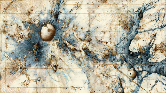 visual guide for inner symbolism | forest of memory | ritual intensity | dull gold and oxidized blue | organic visual chaos | archaic weapons | distorted biological overlay | visual chance generation