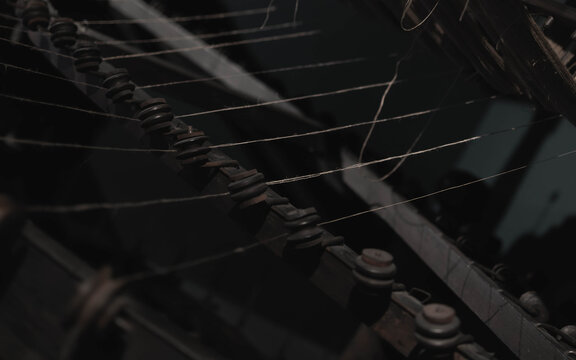 Ancient Translation Icons. Line vector icons of archaic text machine translation: scroll band, coded marks, AI unit, switching