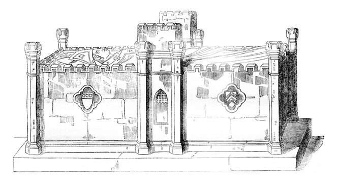 Tomb of the archbishop Philip of Heinsberg, in Saint Materne chapel, cathedral of Cologne, vintage engraving.