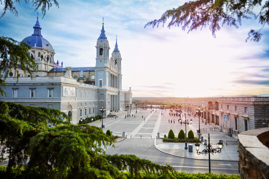 Facade of Almudena Cathedral, is a Catholic cathedral in Madrid, Spain