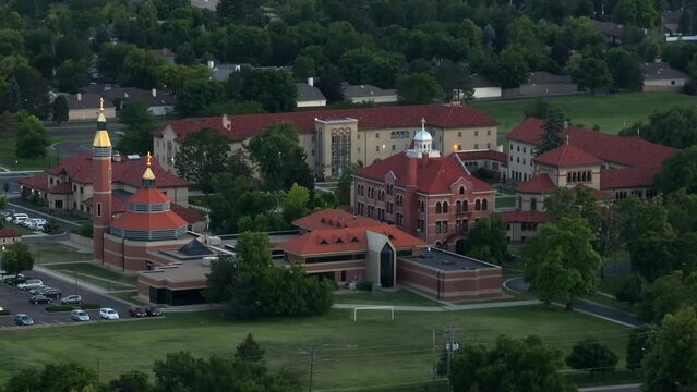Large Catholic church in America. Archdiocese of Denver aerial establishing shot.