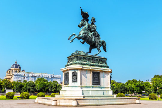 Horse and rider (Archduke Charles) memorial at the Hero Square in Vienna, Austria. Archduke Charles was the main military reformer in the Austrian Empire during the wars against Napoleon.