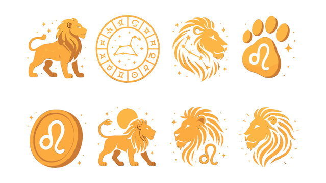 Leo zodiac icons set – lion, constellation, paw, emblem, head, astrology symbols