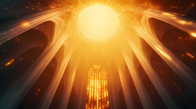 Divine feminine archetype radiating sacred geometry cosmic background ethereal glow spiritual symbolism. Divine - Cathedral. Illustration