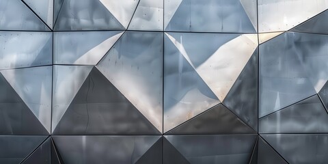 Close-up of modern architectural facade with abstract geometric shapes and reflections in natural light