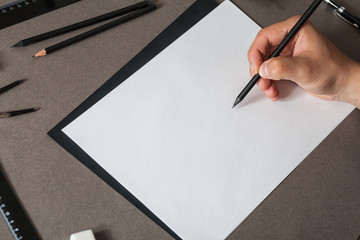 Man draws a sketch on the table