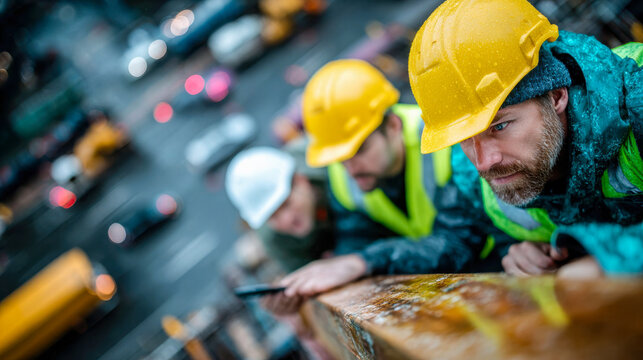 Engineers collaborating on construction project
