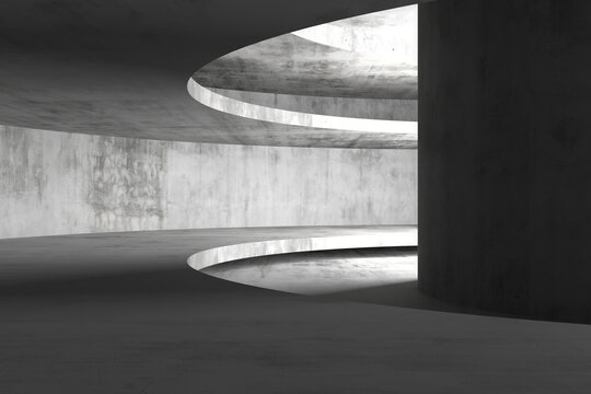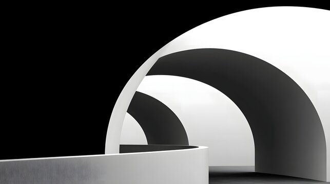 Abstract image of gray and white curved architectural forms creating a spacious, minimalist interior scene Showcase, ideal for product display or design presentation