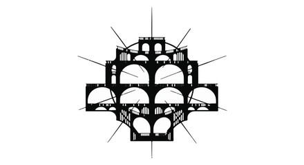 Collection of black silhouette temple domes on white background representing architectural diversity and cultural heritage with intricate details and unique shapes