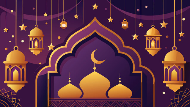 beautifully decorated Arabic arches with gold and purple motifs, exemplifying classic Middle Eastern architectural style..eps