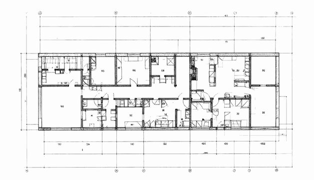 Grunge concrete gray wall texture with rough cement surface. Illustration features long, dusty, horizontal background with building facades, urban architectural elements, weathered, seamless design.