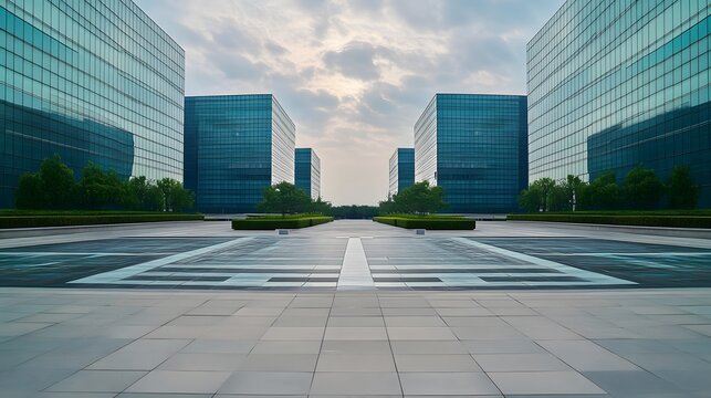 Urban cityscape at dusk with tranquil aesthetic for modern living