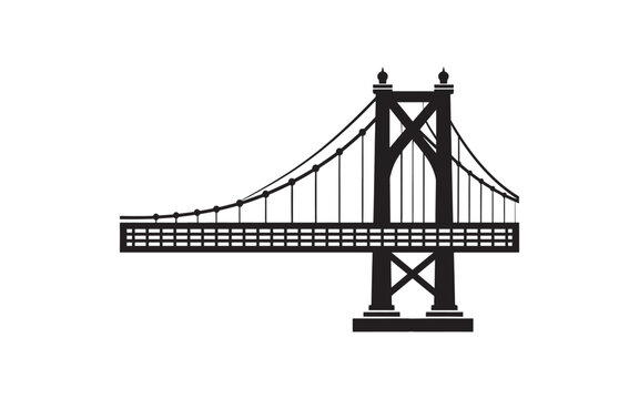 Vector illustration of a modern suspension bridge silhouette. Simple design conveying architectural strength.  Ideal for urban, design, and architecture themes.