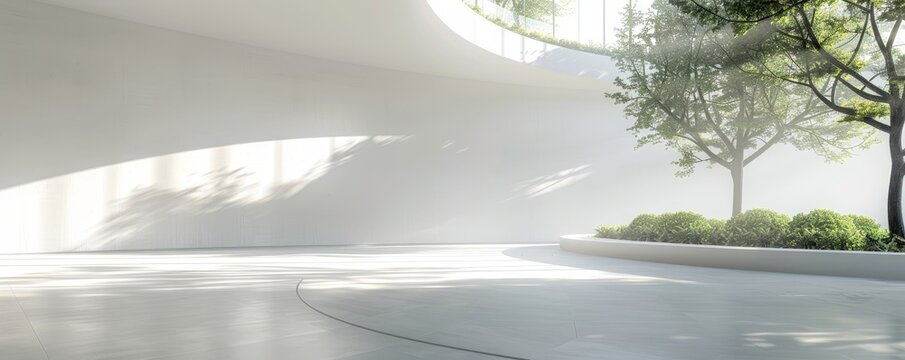 Empty minimal abstract architecture building interior or exterior concrete design with open space floor courtyard white area curved walls museum plaza, display showroom mockup environment background