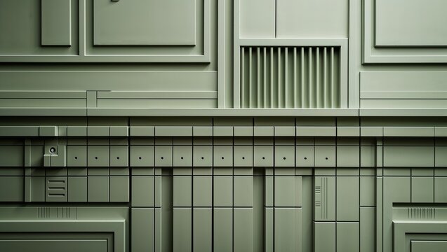 Complex monochromatic geometrical shapes create an abstract pattern in a clean architectural style
