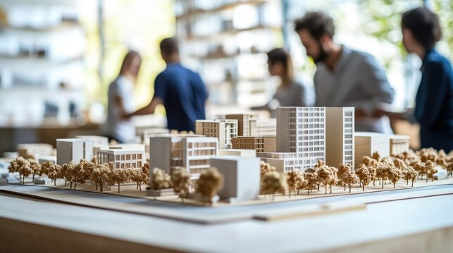 Architectural City Model Presentation with Modern Buildings and Urban Planning Concept
