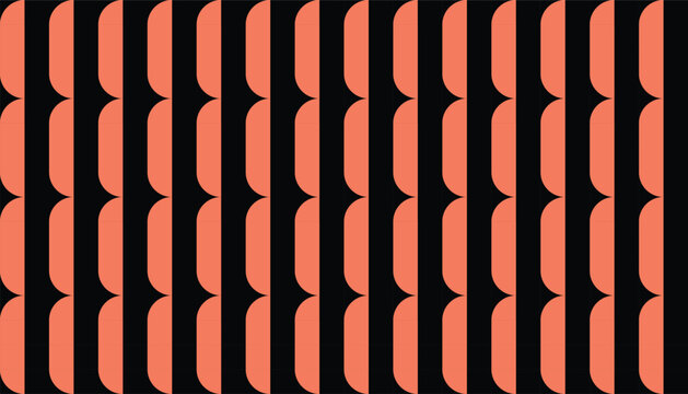 A seamless geometric pattern featuring vertical coral arcs on a black background, forming a rhythmic and minimalist visual