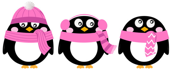 cute penguin wearing winter hat and scarfs,  isolated png transparent background