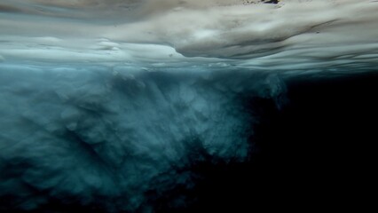 Greenland sea ice fishing hole under iceberg, underwater shot of berg