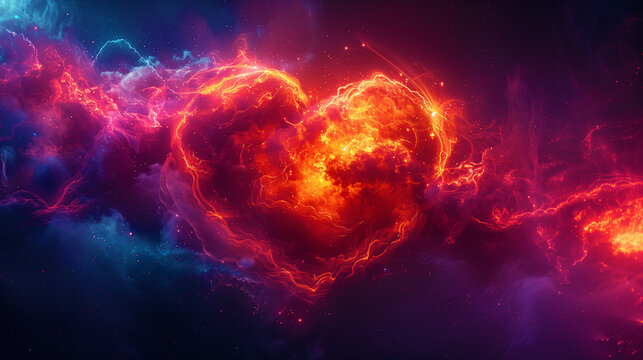 Explosive brushstrokes of reds and purples depicting swirling ardent hearts. Extremely detailed high resolution illustration.