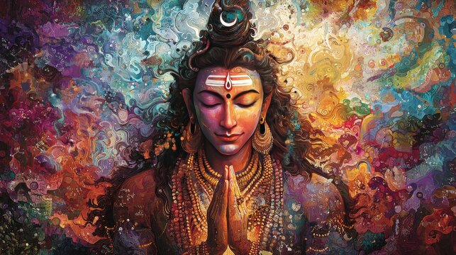 Vibrant 3D Depiction of Lord Shiva in Meditative Pose