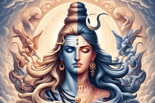 Exploring ardhanarishvara the divine union of shiva and parvati india spiritual art mystical environment devotional perspective hindu mythology