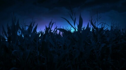 Alien Colorful Lights From UFO In Corn Field