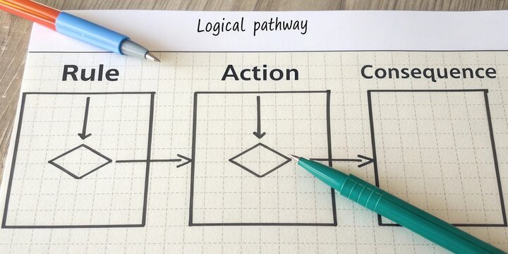 Old mechanical typewriter typing Logic in a close-up view, with metal letters striking the white paper.