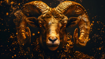aries horoscope sign on shiny stars galaxy background. Gorgeos black ram with horns on black background