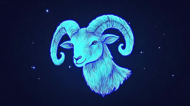 A ram, symbolizing the Zodiac sign Aries, standing prominently in the midst of a sky filled with fluffy clouds