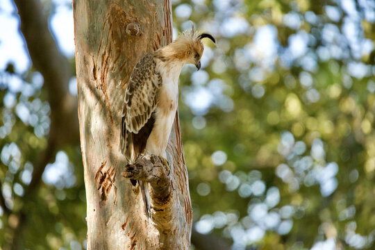 Changeable Hawk Eagle with bear marks on the tree. Its subspecies have either pale or dark morphs, giving rise to the name "changeable"