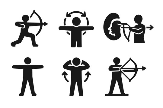 Simple exercise routine icons with minimalist black and white line art