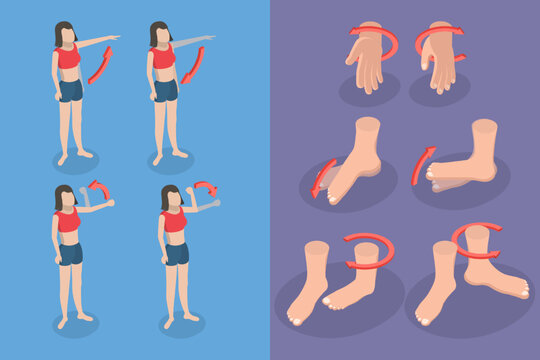 3D Isometric Flat Vector Conceptual Illustration of Muscular Motion, Abduction and Adduction Movements