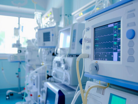 New modern equipment and devices in a medical clinic. Hospital interior. AI generated.