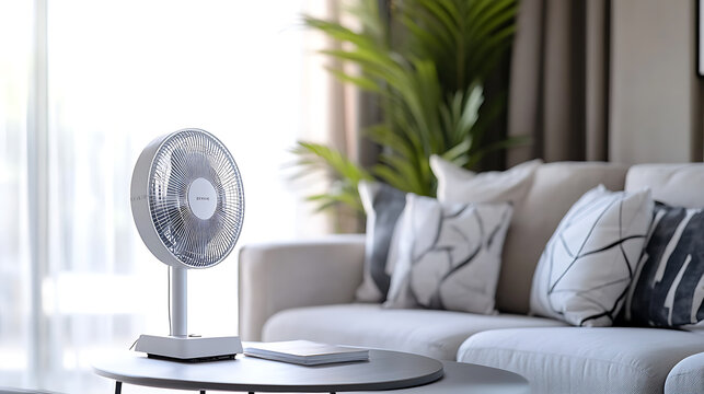 Contemporary electric fan on living room table