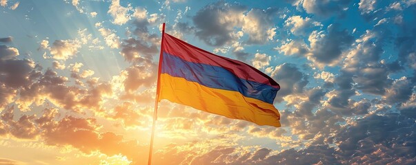 The Red and Yellow: The Flag of Armenia as a Symbol of the Sun and the Nation - Visualize the flag of Armenia with its red and yellow colors, symbolizing the sun and the nation's history