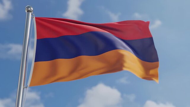 Armenian flag waving in the wind against a beautiful cloudy sky