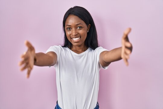 Full length profile shot of a little girl running towards a young female with arms wide open