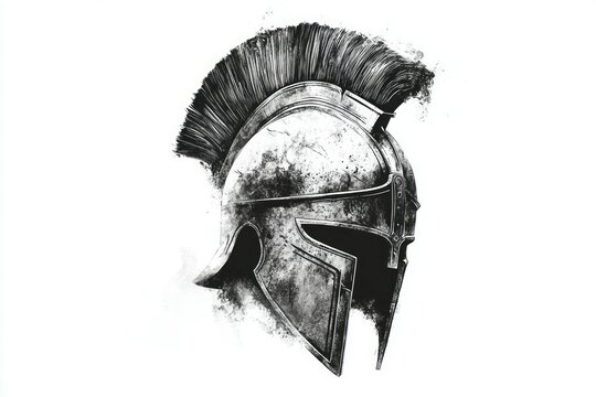 Pencil drawing spartan helmet on white background black and white. Spartan helmet tattoo design