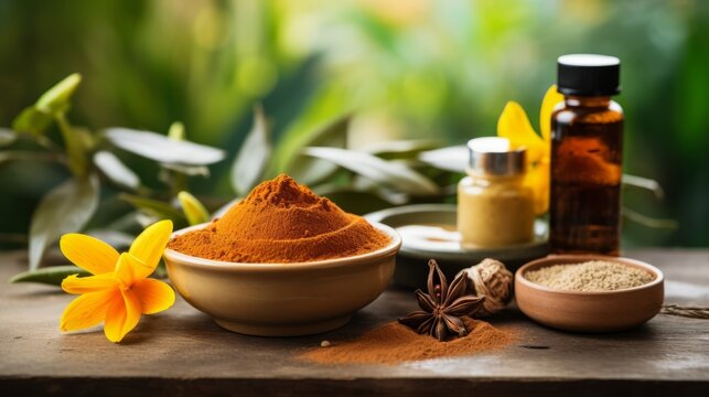 Natural wood and scented spice podium to showcase product authenticity aromatherapy candles that provide a soothing aroma.