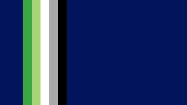 The aromantic pride flag consists of five horizontal stripes, which, from top to bottom, are: green, light green, white, gray, and black. In this order, the stripes represent aromanticism, the aromant
