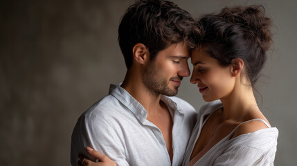 A loving couple embracing in soft light