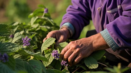 Lemon balm, Melissa officinalis - is a perennial herb plant in the mint family.  The leaves have a mild lemon scent and are used in herbal tea.