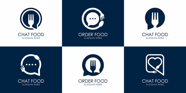 Food Talk  icon set Logo vector illustration design template,or ordering food or chat bubbles with a fork