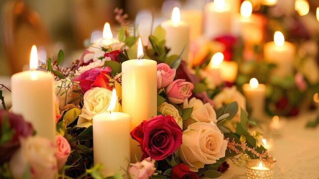 Decorating with candles and flower arrangements