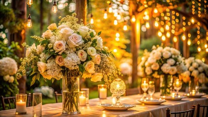 Elegant floral arrangements in luxury venue for wedding celebration