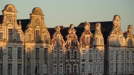 Houses with pediment, Flemish architecture  in Place des Heros (heroes square) in Arras, North of France