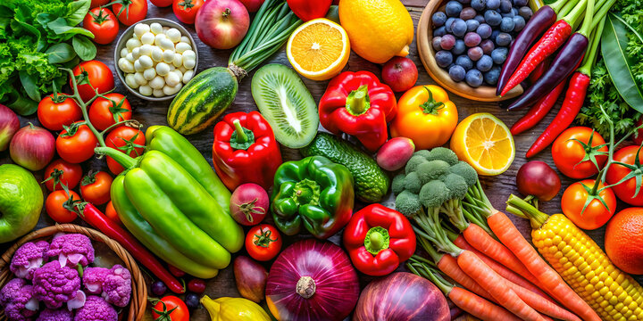 Vibrant array of colorful, fresh fruits and vegetables, market, vibrant, array, colorful, fresh, fruits, vegetables, farm