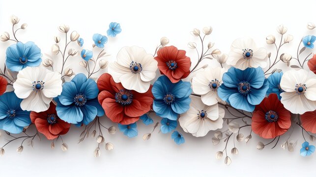 Floral Flowers of red, white and blue arrayed beautifully
