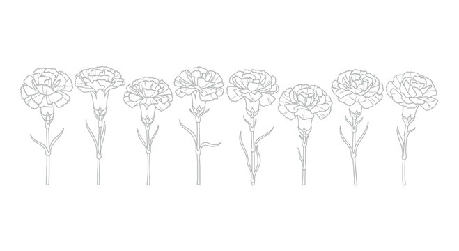Blossoms arrayed in gradient hues on white backdrop, petals unfurling
